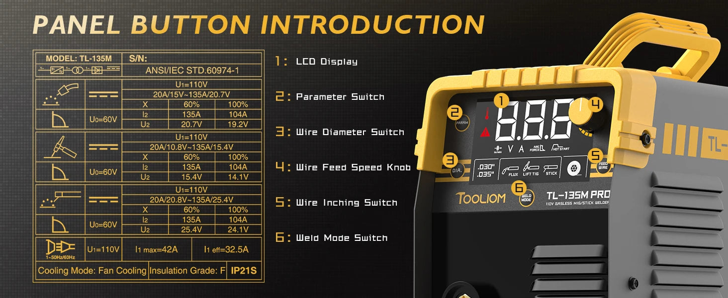 135A MIG Welder Flux Core 110V MIG Welder