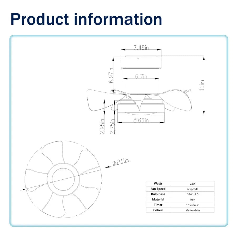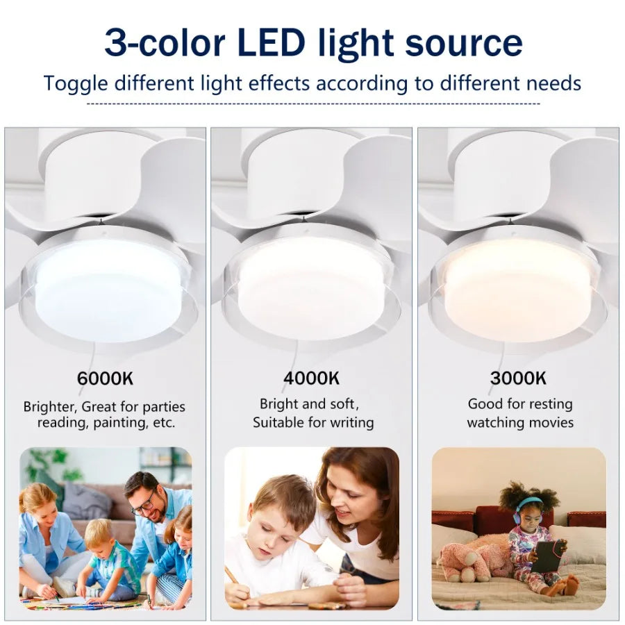 21 inch Ceiling Fan with 3 Color Temperatures Light and Remote Control DC Motor Powerful and low noise Small Space ceiling fan