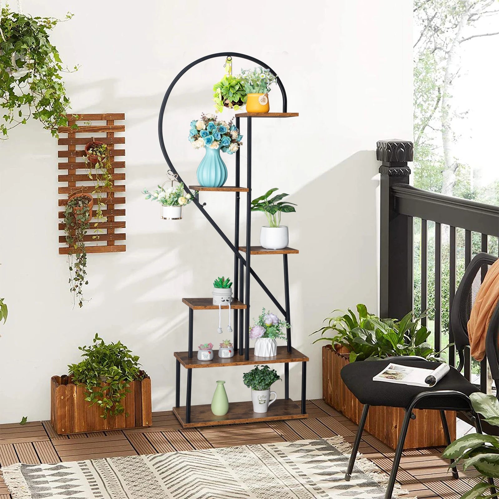 2pcs 6 Layers Half Heart Iron Wood Suitable For Garden Balcony Patio Lawn Plant Stand Flower Pot Stand Iron Flower Stand Black