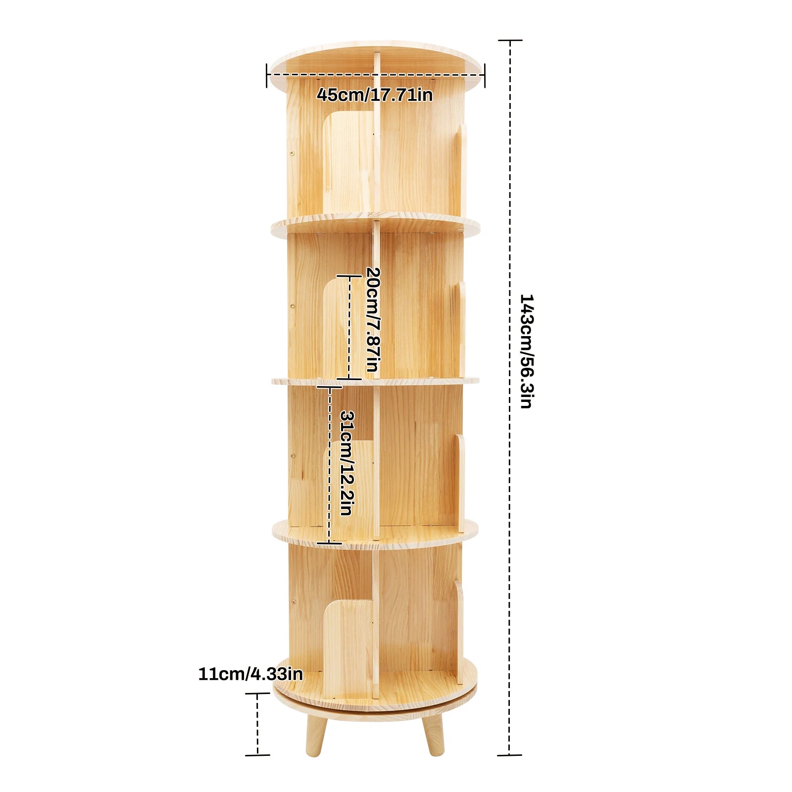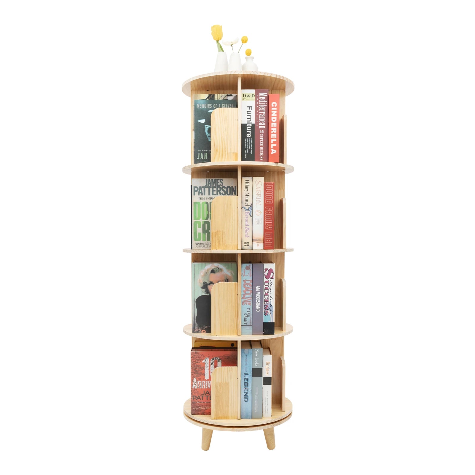 4 Tier Rotating Bookshelf with Legs,Floor Standing Stackable Wood Round Bookshelf 360 Display Book Shelf for Living Room Bedroom