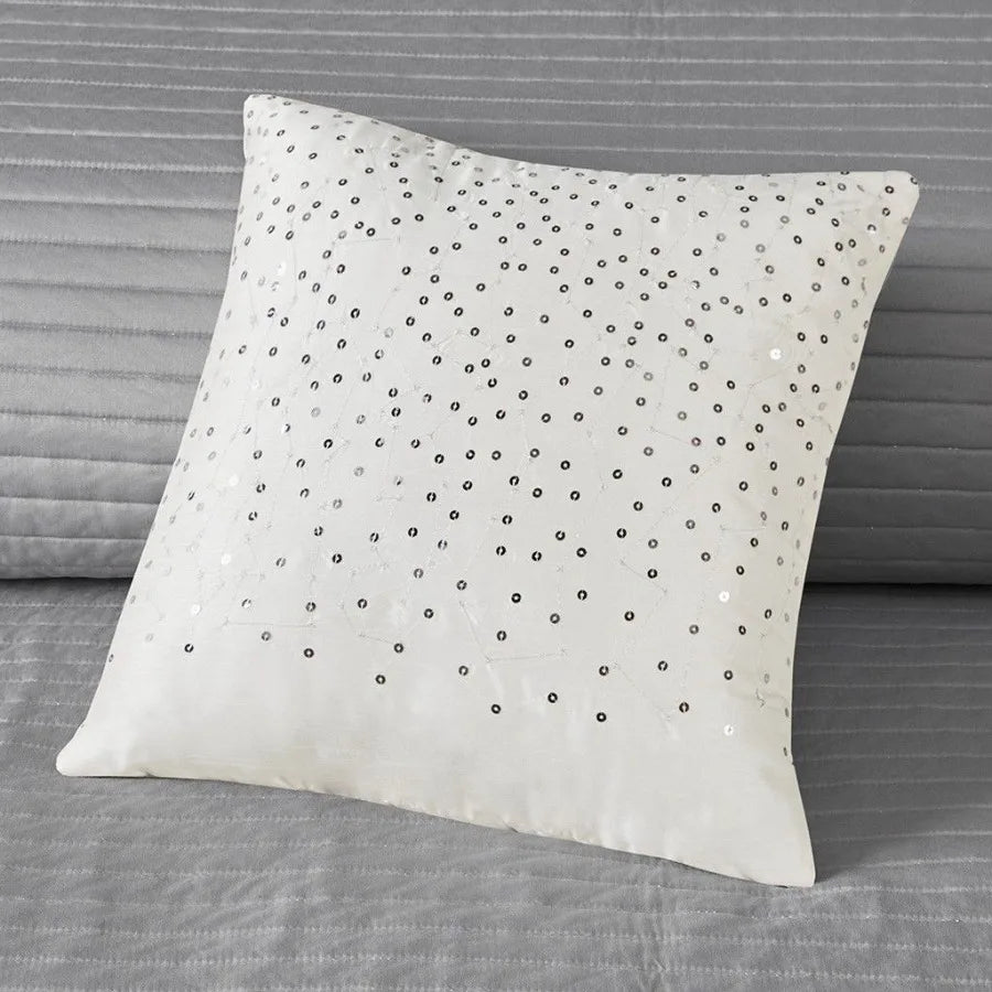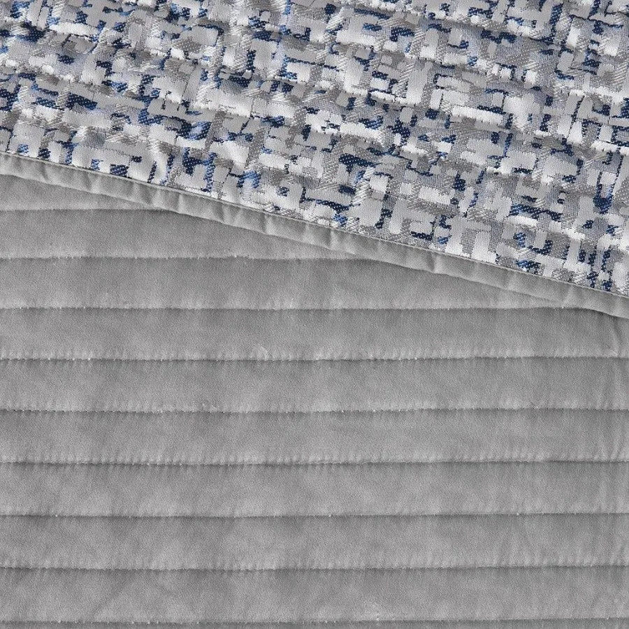 6 Piece Reversible Jacquard Quilt Set with Throw Pillows Navy Full Queen