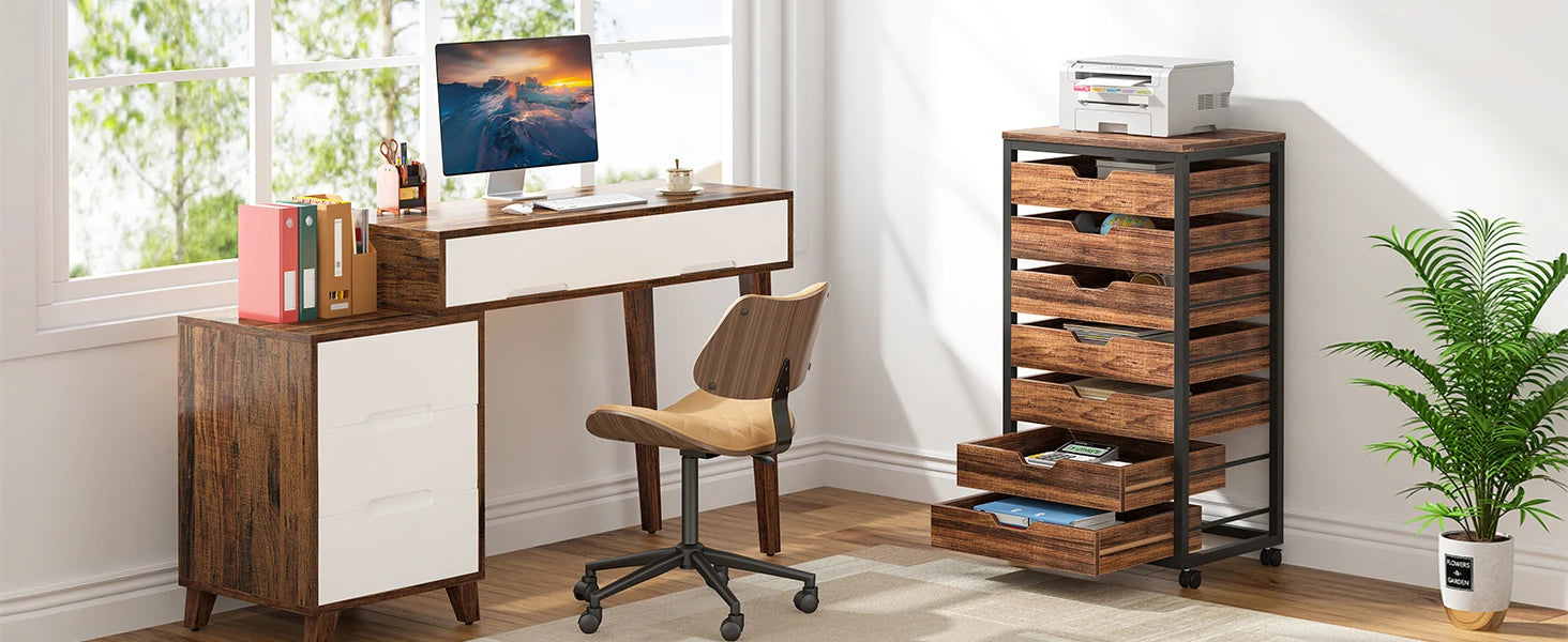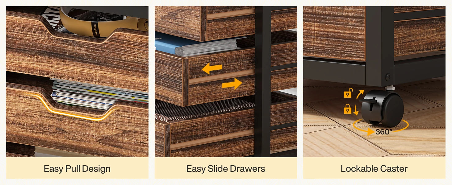 7-Drawer File Cabinet with Drawers & Wheels, Wood Mobile Storage Drawer