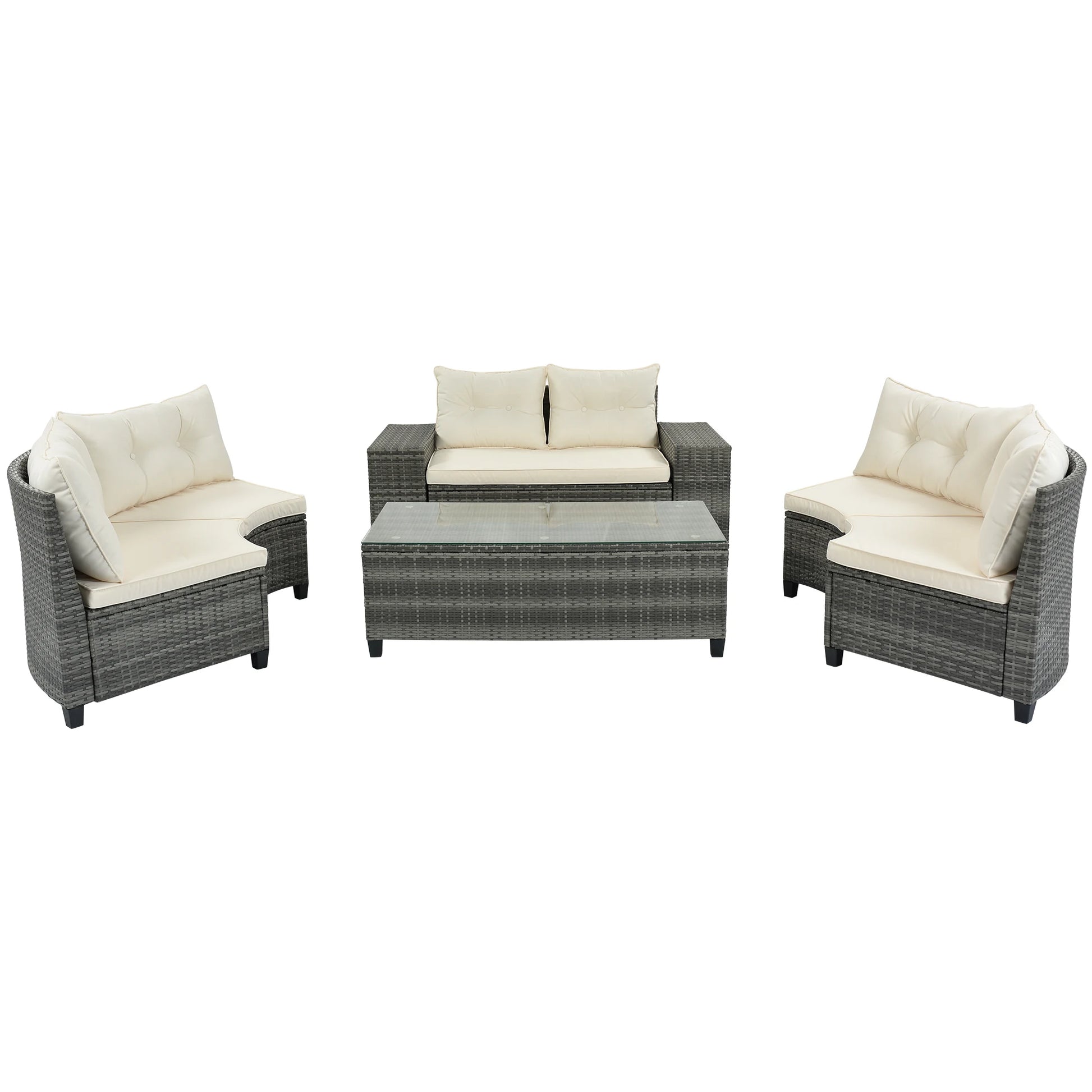 8-pieces Outdoor Wicker Round Sofa Set, With Rectangular Coffee Table