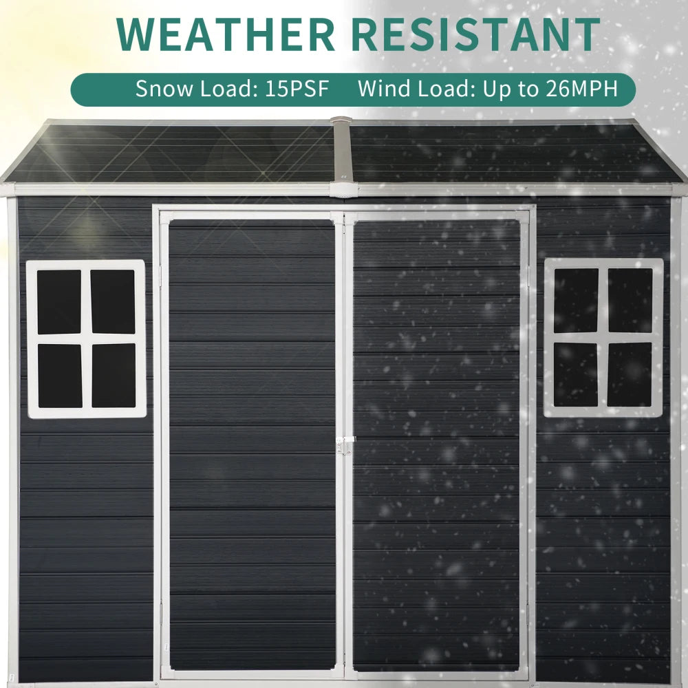 8x6ft Outdoor Resin Garden Shed with Floor and 2 Windows, Plastic Patio Outdoor Storage Shed with Lockable Door for Garden Tools
