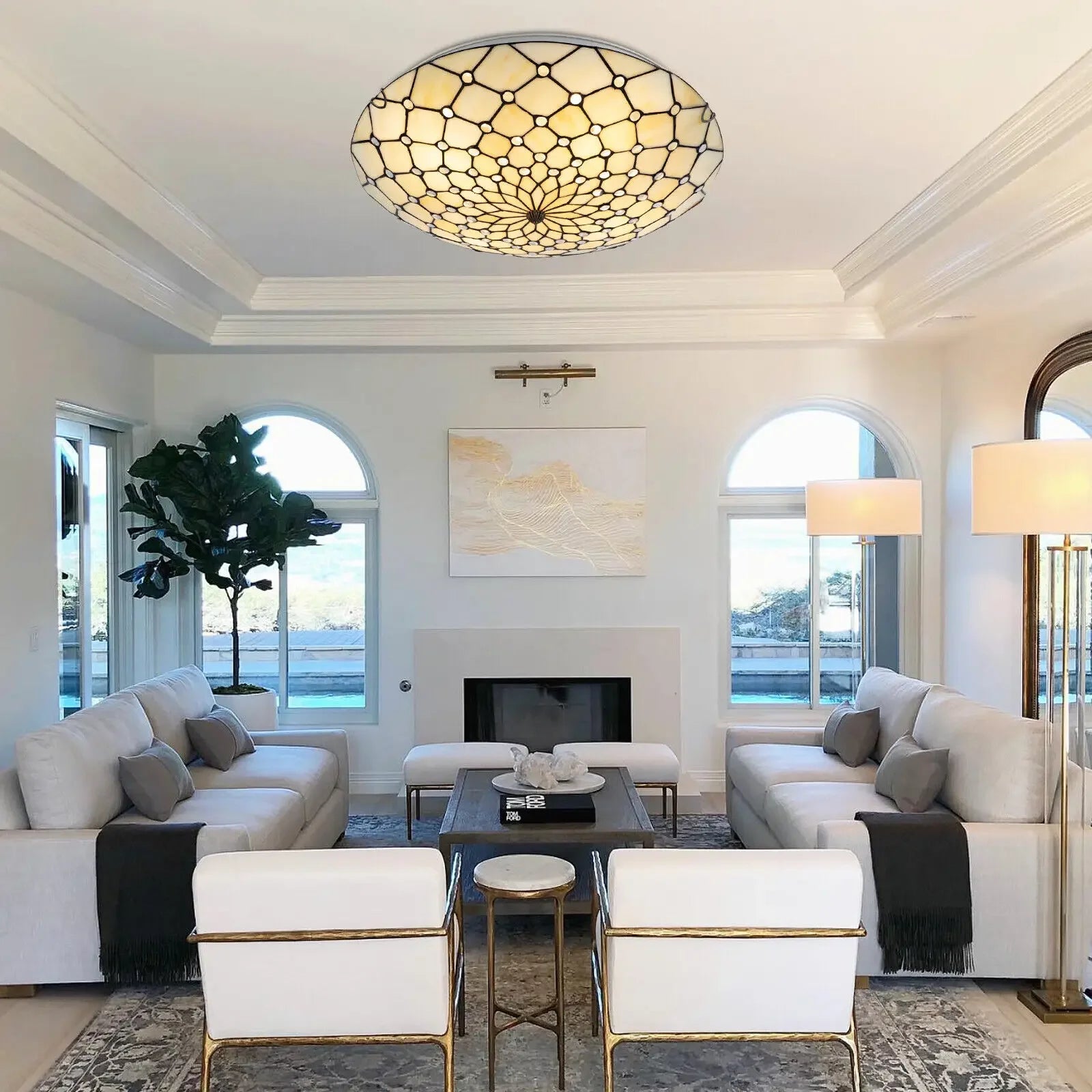 Antique Style 4-Light Flush Mount Ceiling Light - Stained Glass Shade with Vintage Finish for Kitchen Lighting