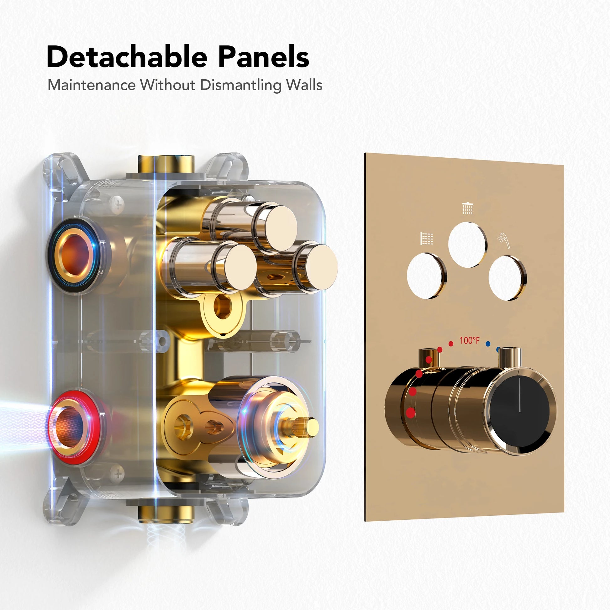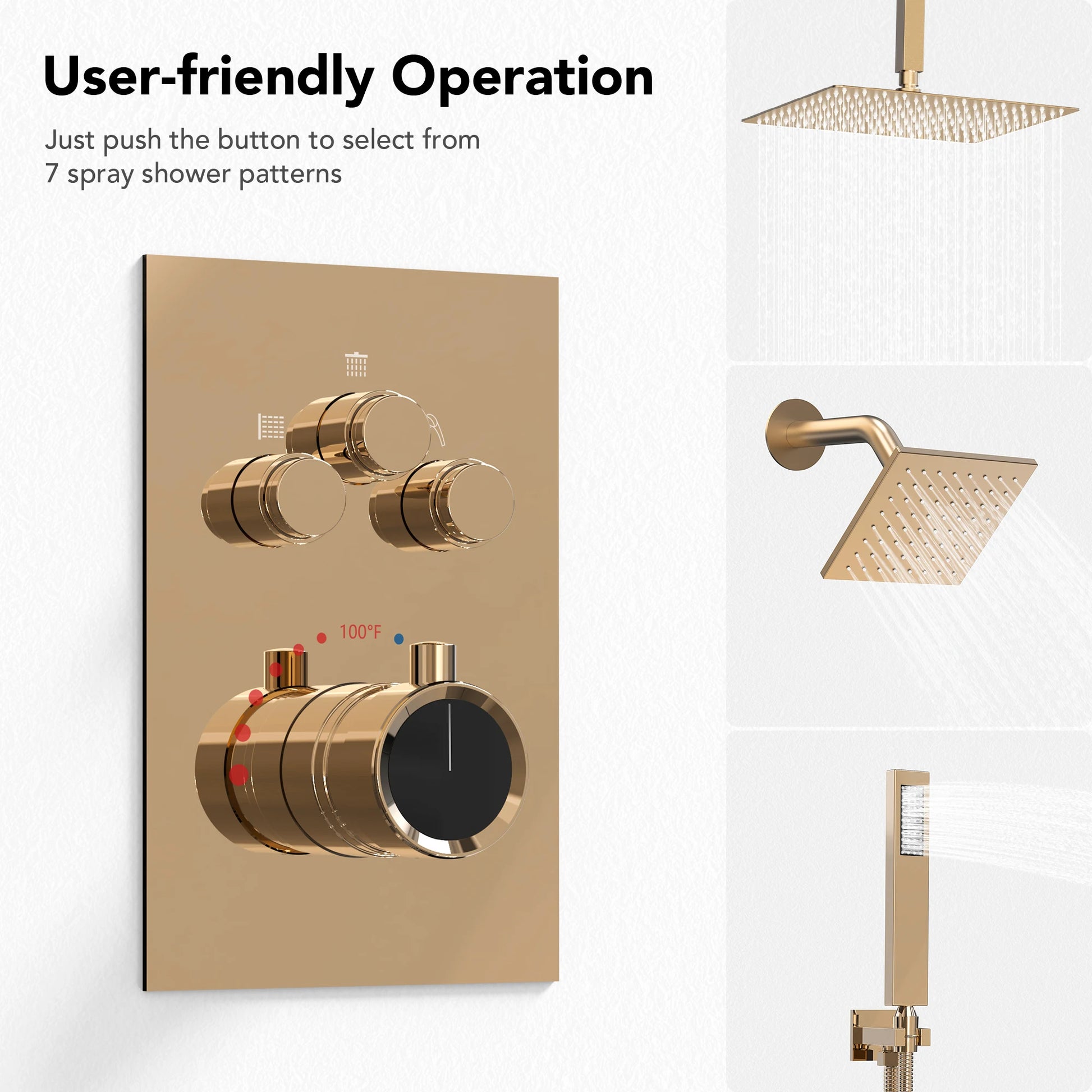 Bathroom Thermostatic Shower System Set 12-inch Ceiling Rain Dual Shower Head Faucet Set with Handheld Spray Combo