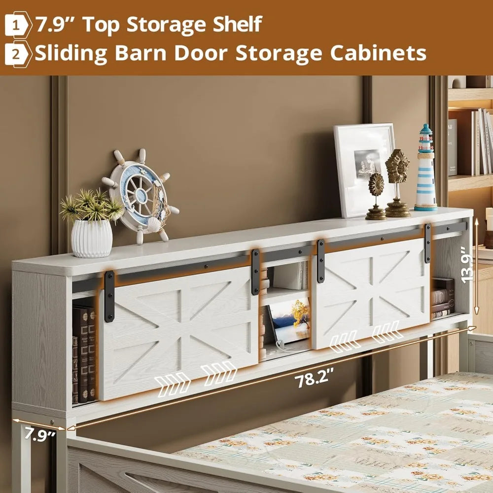 Daybed with Trundle, Rustic Bed Twin with Storage and Charging Station