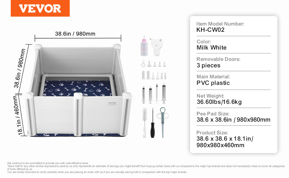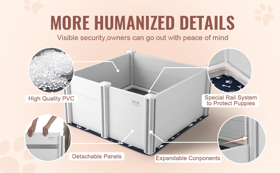 Dog Whelping Box 38.6x38.6x18.1in PVC with Rails Pee Pad for Dogs Puppies