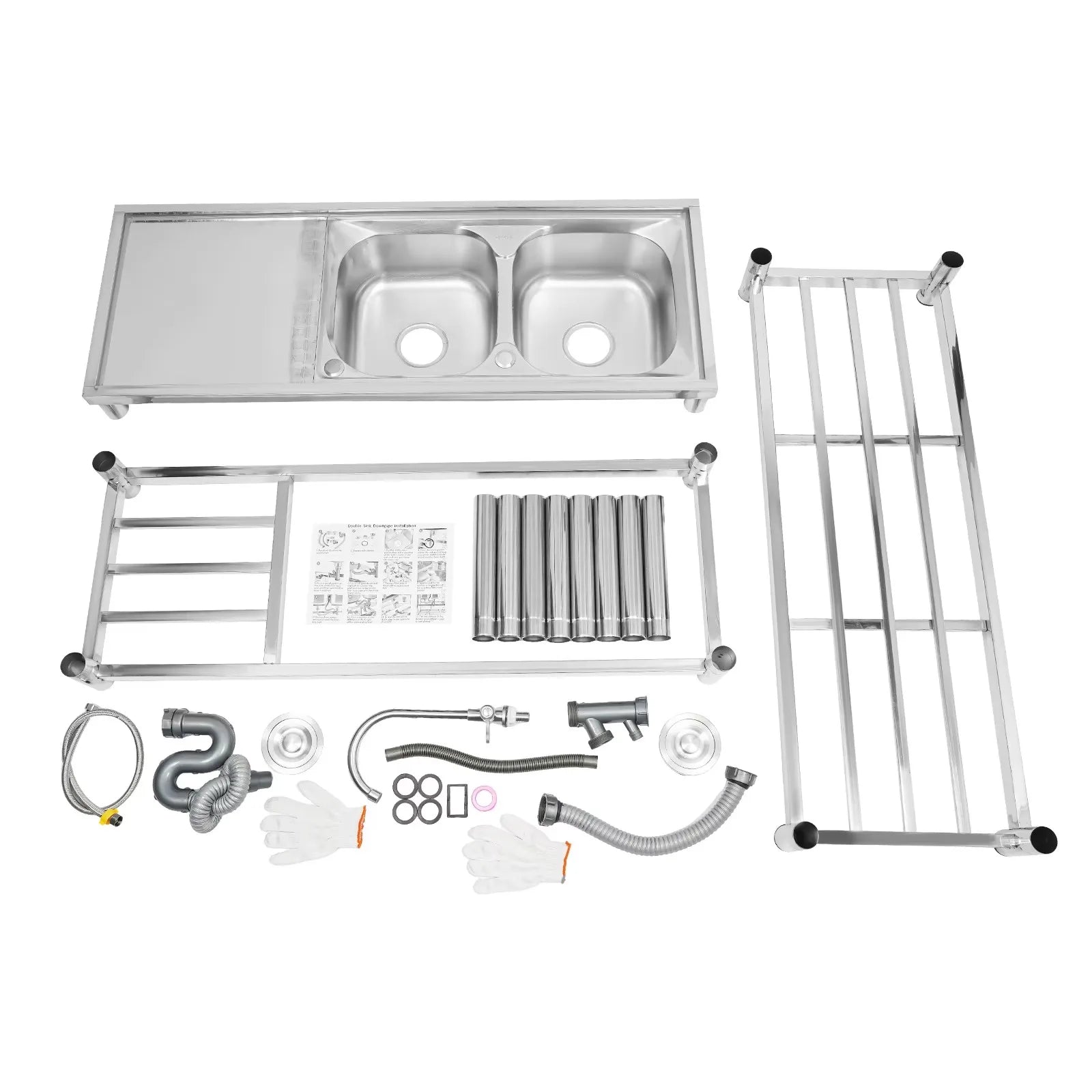 Double-layer Sink Kitchen and Commercial Sink with Drainage Device and Faucet