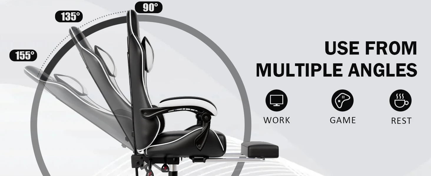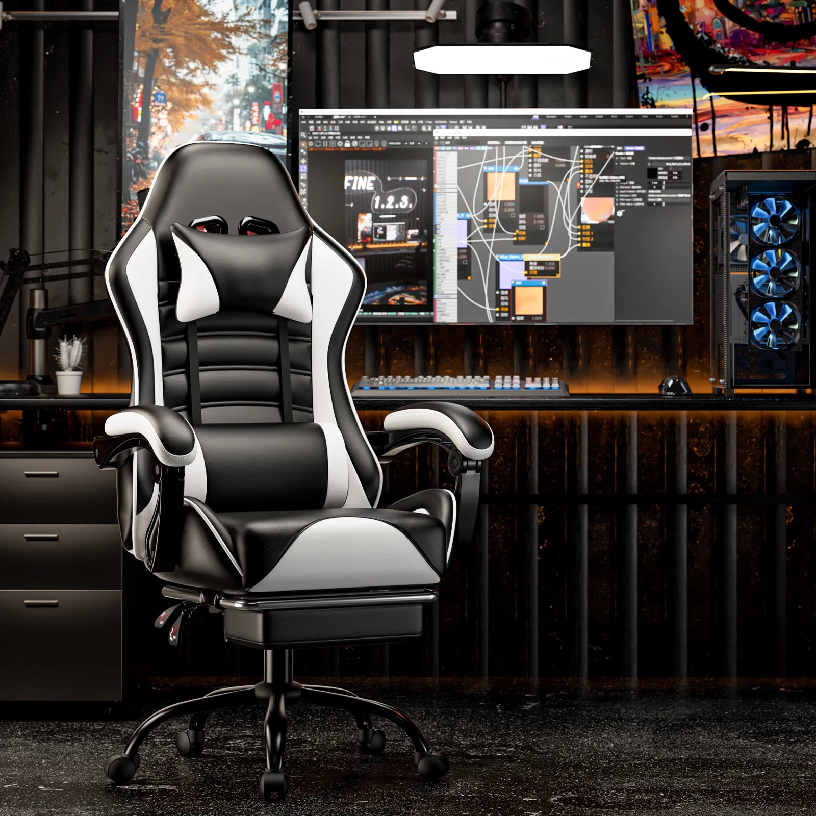 Ergonomic Gaming Chair with Footrest, Racing Style Video Game Chair for Adults, Reclining Gamer Chair Office Chair
