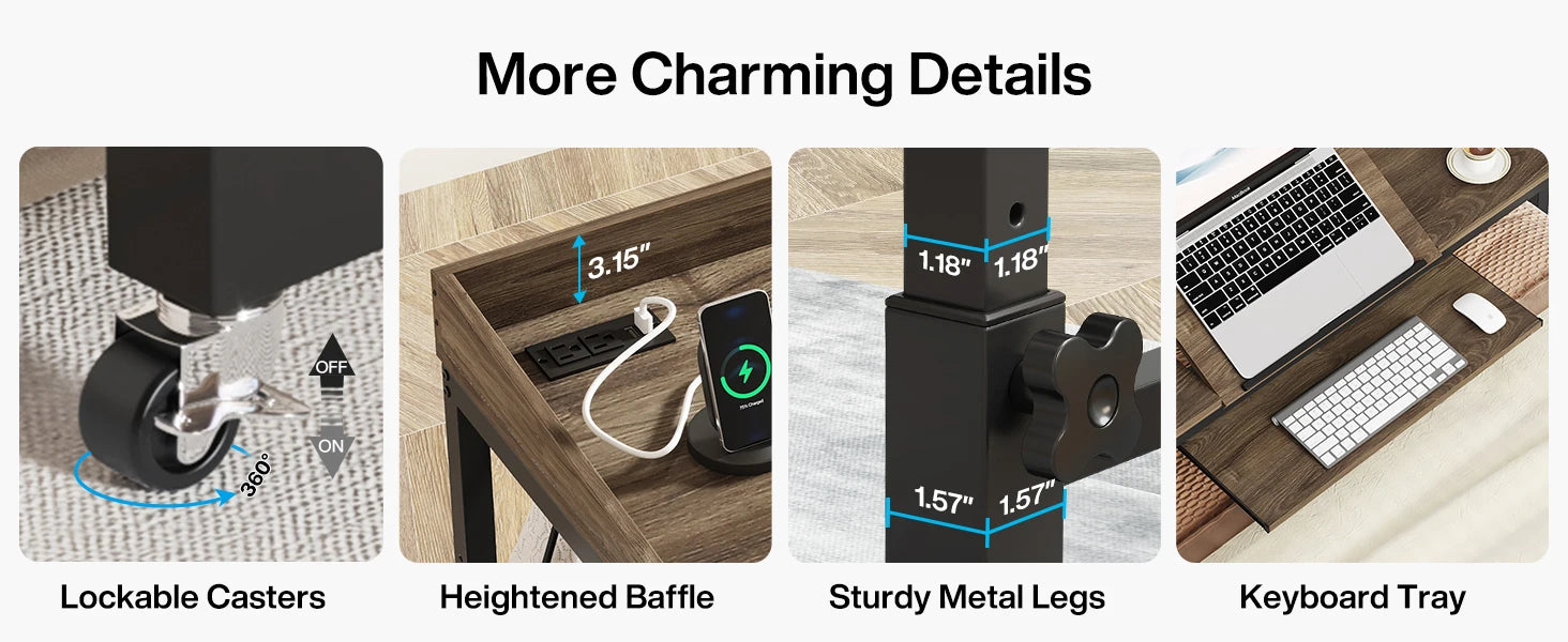 Height Adjustable Overbed Table with Wheels, Queen Size Laptop
