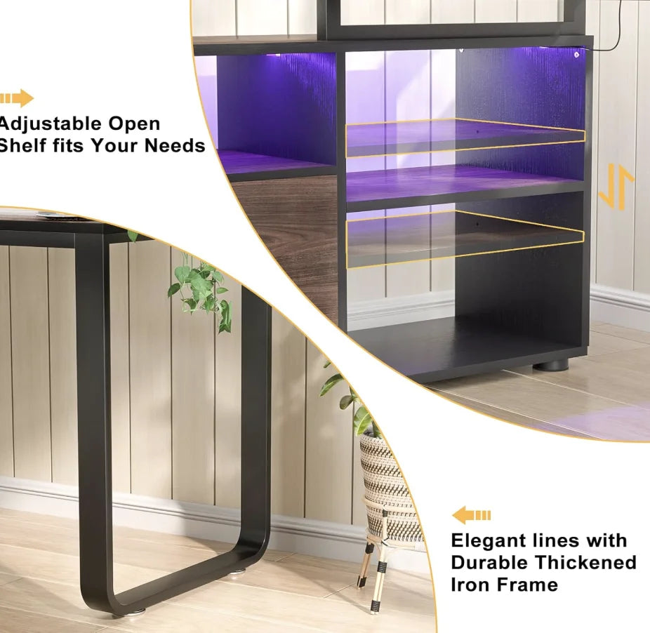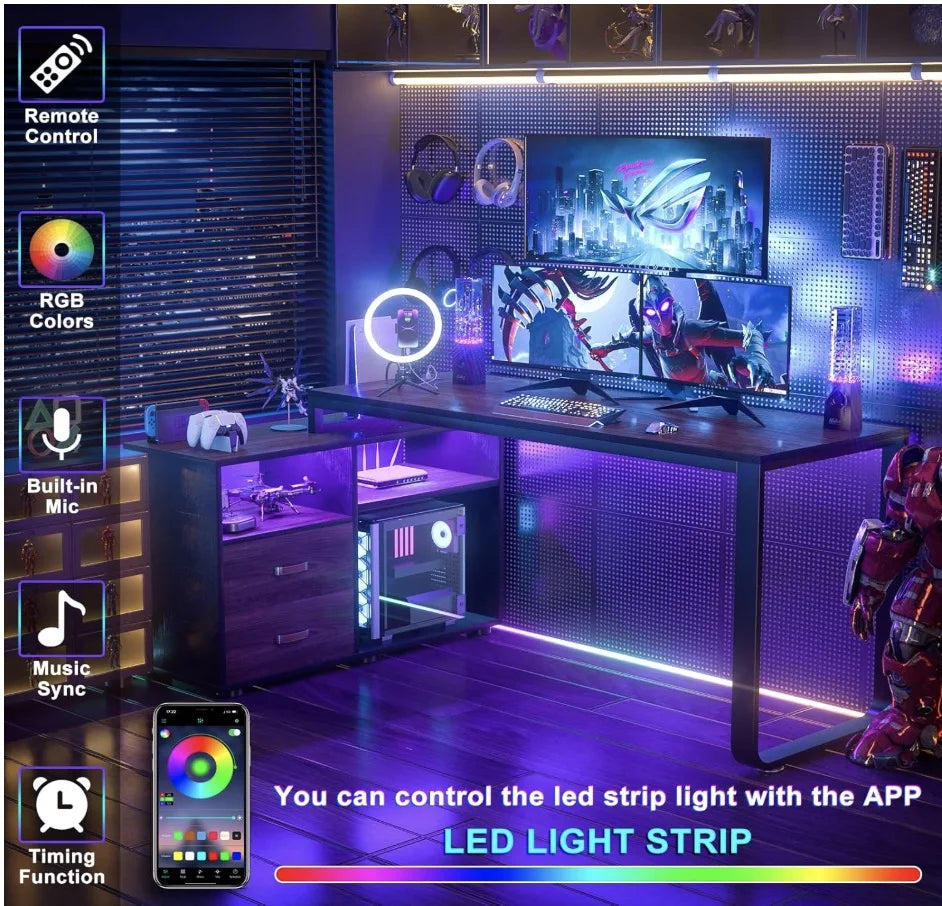 L Shaped Desk with File Cabinet & Power Outlet, Reversible 55 Inch Large Corner