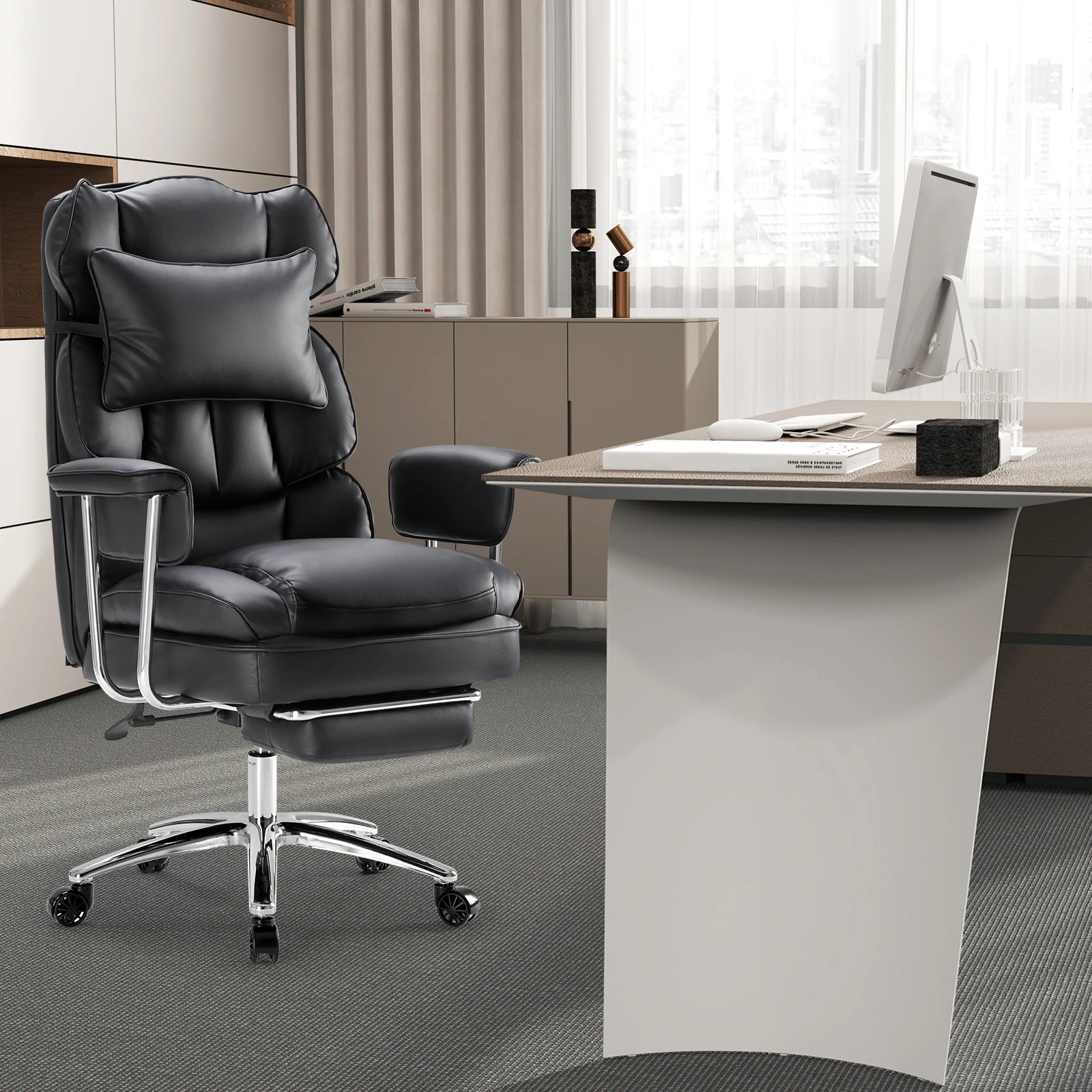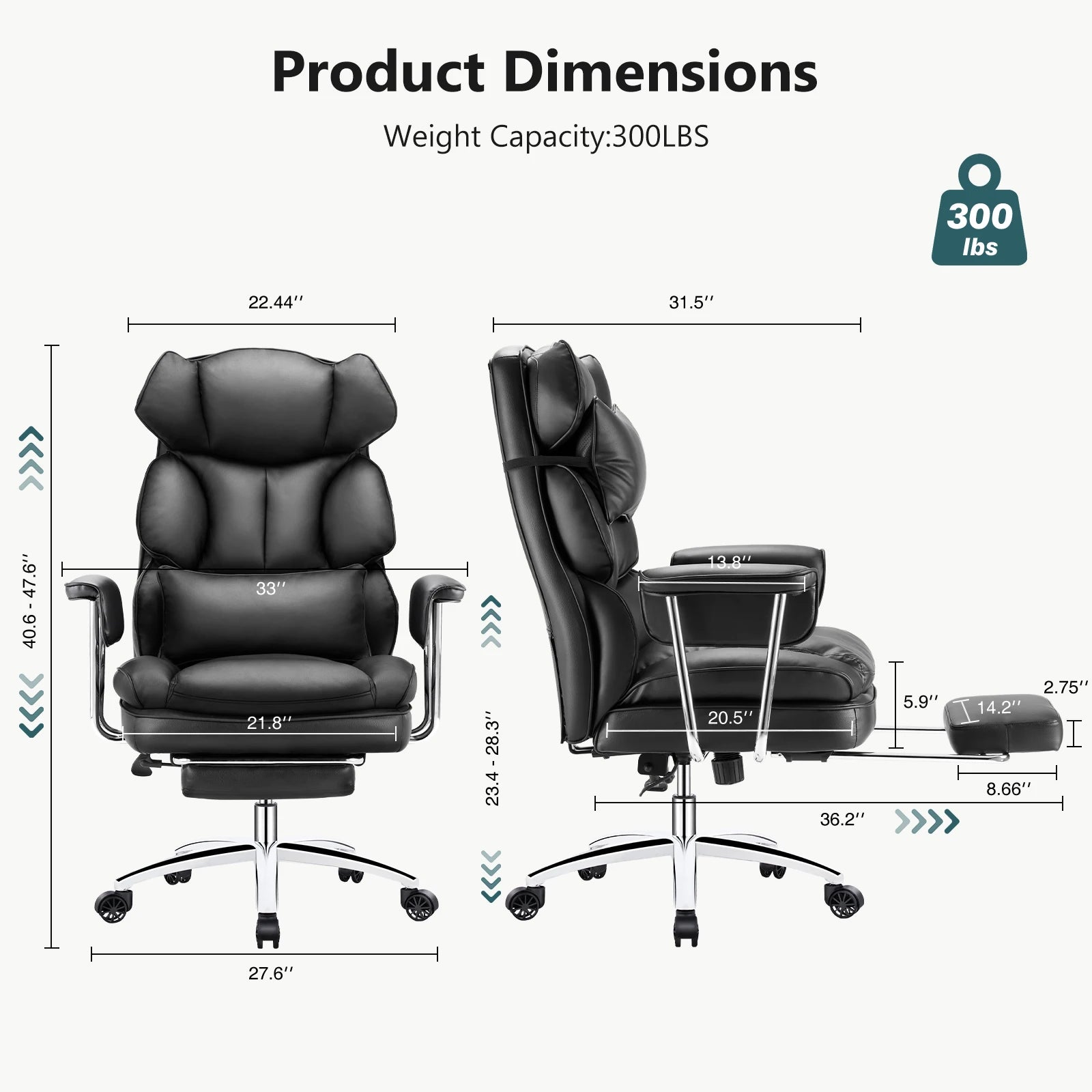 Leather Ergonomic Computer Desk Chair High Back with Footrest Lumbar Support Height Adjustable For Home Office