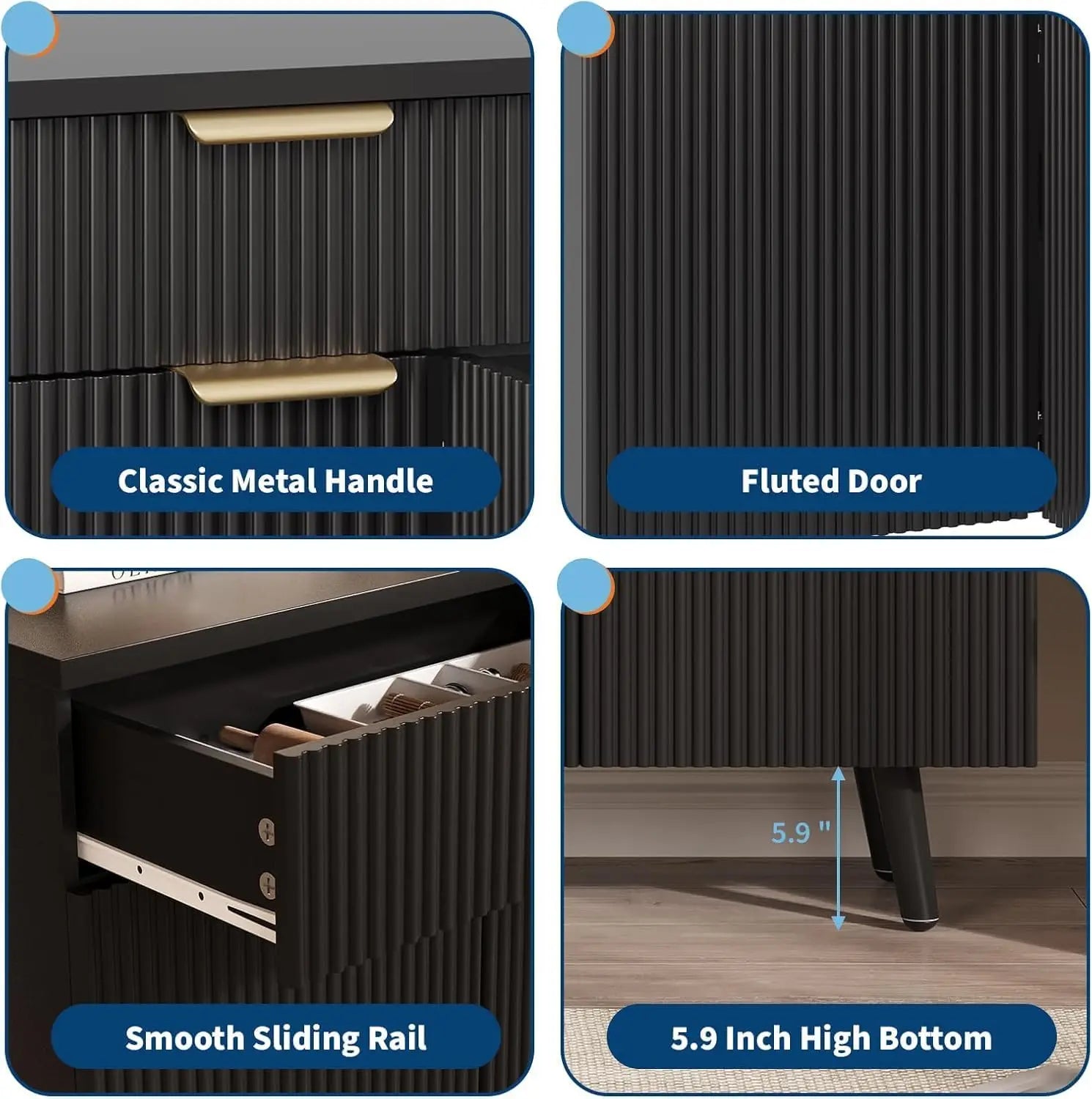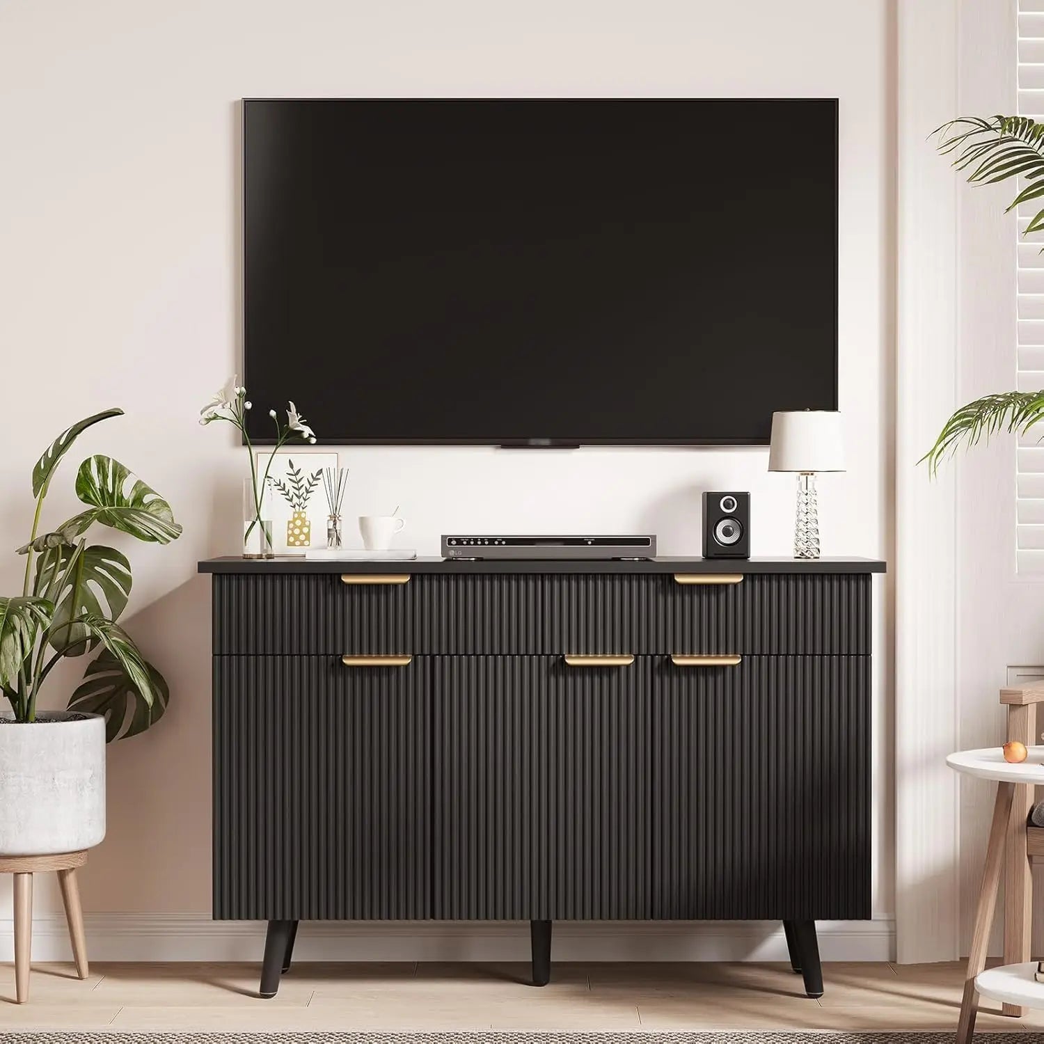 Modern Farmhouse Buffet Cabinet with Fluted Design Kitchen Storage Sideboard & Coffee Bar Cabinet for Living Room Hallway