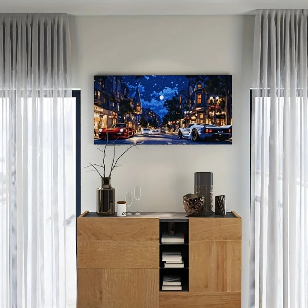 Modern sports car with snow scene art painting, modern poster suitable for interior, 1.5 inch thick solid wood frame