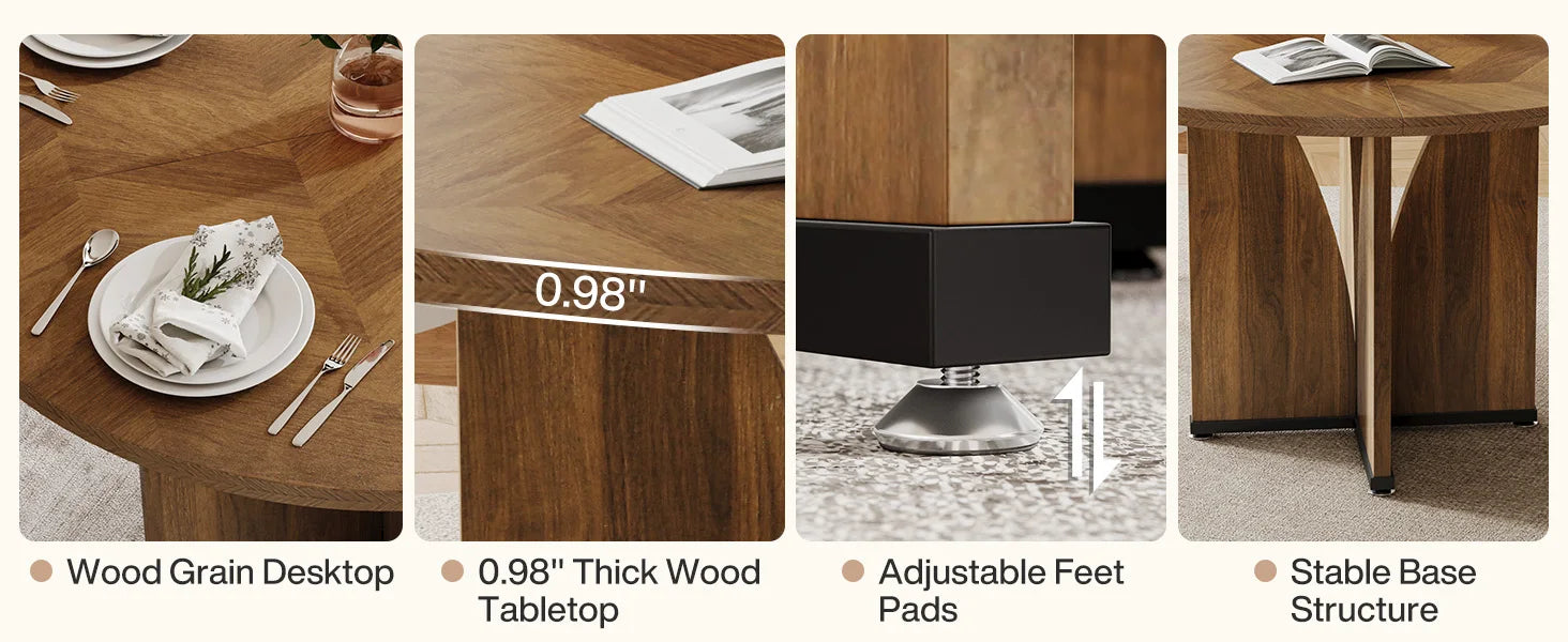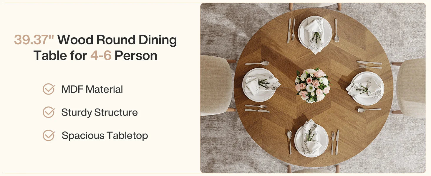 Round Dining Table for 4 People, Farmhouse Kitchen Dinner Table with Wooden Tabletop and Legs for Kitchen,Living Room