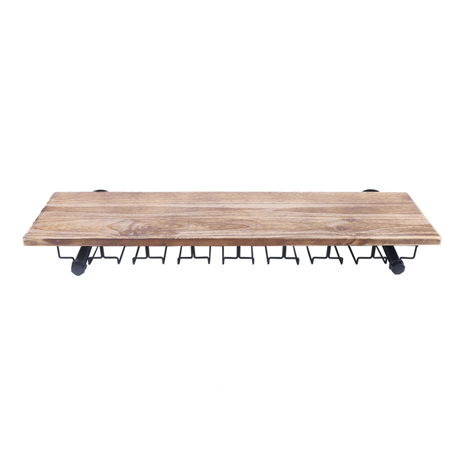 Wine Rack, Wall-Mounted, Black & Pine Wood, Rustic Design with Glass Storage, Spacious Shelf for Wine Bottles & Collectibles